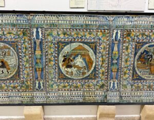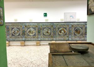 «Il documento saccense più antico rimane il pannello di San Calogero, collocato nella grotta a monte Cronio, che reca la data 1545 e il nome del suo autore, il presbiterio Francesco Lu Sciuto, pronipote del più celebre Nicola» ci ricorda il libro Le Città della Ceramica, guida realizzata dall’Aicc con il Touring Club Italiano.