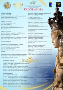 Ore 8.00 – 11.30 – 17.00 – S. Messe nella Chiesa di Sant’Agostino