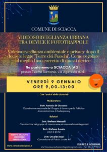 Il Comune di Sciacca ospiterà un convegno dedicato alla videosorveglianza ambientale e alla tutela dei dati personali, alla luce delle recenti novità normative introdotte dal decreto legge noto come “Terre dei Fuochi”.